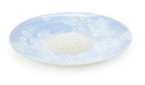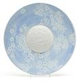 A porcelain dish decorated with blooming prunus, convex biscuit well with floral design in relief, Royal Copenhagen. Diam. 38 cm.