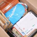 All world. 4 large boxes with some stamps in albums and stockbooks, also many covers and postcards, some coins and 1 medal in small cabinet also