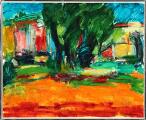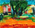 Landskab, Vence, 1993. Sign. Lindemann; sign. og dateret på bagsiden. Olie på lærred. 82×100.