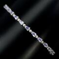 Tanzanitarmbånd af rhodineret sterlingsølv prydet med talrige facetslebne tanzanitter. L. 18,5 cm.