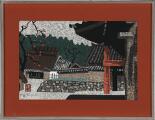 Tre japanske træsnit i farver indrammede med passepartout. Synlig mål ca. 36×23 cm. 23×35 cm. 36×23 cm. (4)