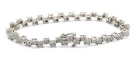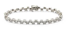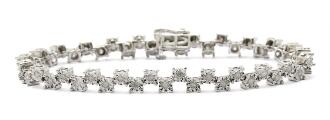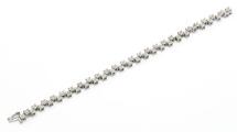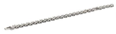 Diamantarmbånd af 10 kt. hvidguld prydet med talrige enkeltslebne diamanter. Vægt ca. 11,5 g. B. ca. 6 mm. L. 18,2 cm.