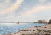 Sailing ships in Øresund with view to Kronborg. Signed Emanuel A. Petersen. Oil on canvas. 71 × 100 cm.