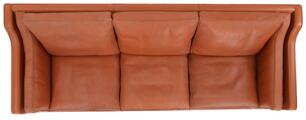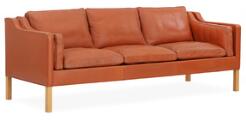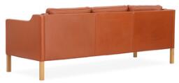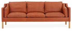 Freestanding three seater sofa with legs of oak. Seat, sides and back upholstered with redbrown, coloured leather. Model 2213. Designed 1963. Manufactured by Fredericia Stolefabrik. L. 220.