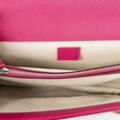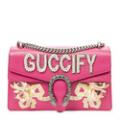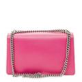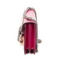 A “Dionysus” bag of pink leather embellished with stones, imitated pearls and so on, silver tone hardware, double chain strap, one front pocket, two compartments divided by a zipped pocket and beige fabric lining. H. 17 x W. 20 x D. 7 cm.