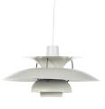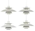 “PH-5”. Fire pendler med skærme af hvidlakeret metal. Udført hos Louis Poulsen. Diam. 50. (4)