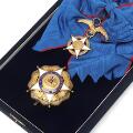 Chile, Fortjenstordenen (Orden al Mérito), Storkors, Type V, 1929-nu, bryststjerne og båndkors i forgyldt sølv og emalje med nogle skader, i original æske