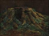 A tree stump overgrown with moss and anemonies. Signed and dated F. H. Sødring 1857 on the reverse. Oil on canvas. 30×40 cm.