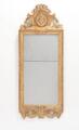 A Gustavian giltwood mirror, carved with flowers and ornaments. Stamped 'IÅ' and Stockholm hall stamp. Stockholm, late 18th century. H. 159 cm. W. 63 cm.