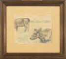 Køer på marken. Sign. LM 36 og 48. Pen og vandfarve på papir. Lysmål 25×33 og 21×27. (2)