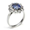 Safir-og diamantring af platin prydet med oval facetslebet safir på ca. 2.30 ct. omkranset af talrige brillantslebne diamanter. Str. 53.