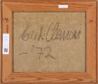 Uden titel, 1972. Signeret på bagsiden Erik Clausen-72. Olie på lærred. 35×41 cm.