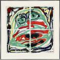 Uden titel. Signeret Jorn. Emaljefarver på keramiske fliser. Monteret på plade. 40×40 cm.