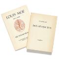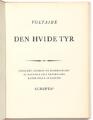Voltaire: Den hvide Tyr. [Cph 1952]. Large 8vo. Limited to 150 numbered copies, this #27. 10 orig. etchings by Lars Bo. Orig. paperboards. Signs of wear. + Kai Flor a.o. (eds.): Louis Moe og Hans Kunst. Cph 1949. Large 8vo. Measures app. H. 30 x W. 20.5 cm. Incl. 2 orig. etchings in colours: Op. 27 “Don Juan Repentant”, and Op. 79 “Méditation”. Orig. wrappers. Signs of wear due to age and use. (2)