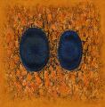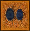 Uden titel, 1973. Signeret og dateret på bagsiden. Olie og mixed media på lærred. 31×31 cm.