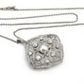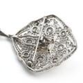 Perle- og diamantvedhæng/broche af platin og hvidguld prydet med kulturperle omkranset af talrige old- og enkeltslebne diamanter på i alt ca. 3.00 ct. Farve: Top Wesselton-Wesselton (G-H). Klarhed: VS-SI. Perlediam. ca. 7,5 mm. L. vedhæng ca. 4,5 cm. L. halskæde ca. 41 cm. England, ca. 1910–20.