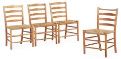 “The Church Chair”. Set of four dining chairs of oak. Seat with woven papercord. Model 4133. Designed 1936. Manufactured by Fritz Hansen. (4)