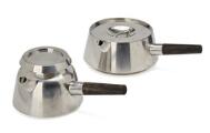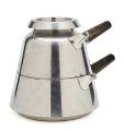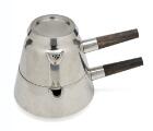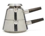 Stainless steel combined two-piece tea- and waterpot with wooden handles. Made and stamped by Georg Jensen, 39. Waterpot: H. 9 cm. L. incl. handle 29.5. Teapot: H. 11 cm. L. incl. handle 26 cm. (2)