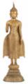 Thailandsk buddha af forgyldt bronze stående på lotustrone. 20. årh.s begyndelse. H. 102 cm.