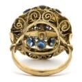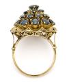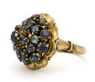 A sapphire ring set with numerous circular-cut sapphires, mounted in 8k gold. Weight app. 6 g. W. 20.5 mm. Size 53.5.
