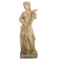 An artificial stone garden sculpture in the shape of a woman carrying a flower bine. Last half of the 20th century. H. 122 cm.
