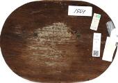 Ice skating and sleighs on the ice of a Dutch canal. Unsigned. Inscribed No. 46 presumably an inventory number fra Gaunoe Castle. Oil on panel. Elliptical. 32×44 cm. Unframed.