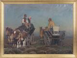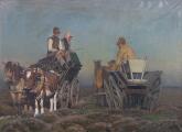 “Hanherredbønder paa Vej over Heden”. Sign. monorgam 1927–28. Olie på lærred. 96×131 cm.