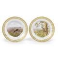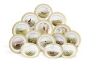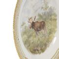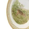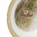 “Fauna Danica” 14 middagstallerkener af porcelæn, dekoreret i farver og guld med dyr. 3549. Royal Copenhagen. Diam. 25,5 cm. (14)