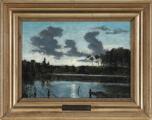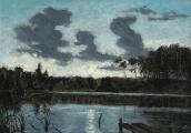 Måneskin over en sø. Sign. C. B. Olie på lærred. 21×28,5 cm.