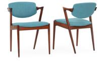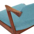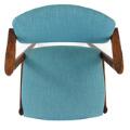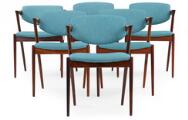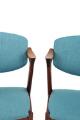 Sæt op seks armstole af palisander. Sæde og vipperyg betrukket med turkis farvet uld. Model 42. Udført hos Schou Andersen. (6)