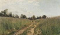 “Vejen gennem Rugmarken”. Sign. J. La Cour 1. Juni - 5. Juli 1901. Olie på lærred. 44×75 cm.