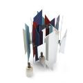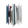 “Divan 2”. Pendel med forkromede og farvede lameller af metal. Udført og mærket hos Lyfa. H. 31,5. Diam. 24.