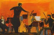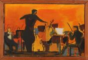 Orchestra. Signed Roger Derieux. Oil on canvas. 21.5×33 cm.