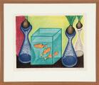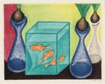 “Hyacinter og guldfisk”. Signeret Scherfig 1968, 192/250. Litografi i farver. Lysmål 47×58 cm.