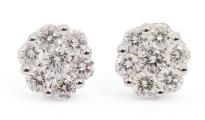 Et par diamantørestikker af 18 kt. hvidguld prydet med talrige brillantslebne diamanter på i alt ca. 0.73 ct. Samlet vægt ca. 1,7 g. Diam. ca. 6,4 mm. (2)