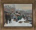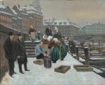 Fiskerkoner på Gammel Strand. Sign. S.C. Bjulf. Olie på lærred. 55×68 cm.