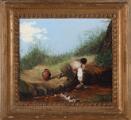 En dreng henter vand ved åen. Sign. E Erwin 1845. Olie på plade. 21×23.