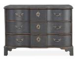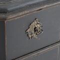 A black åpainted Swedish Baroque chest-of-drawers. Mid 18th century. H. 77 cm. W. 105 cm. D. 62 cm.