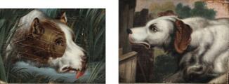 Painter unknown 18–19th century. A hunting dog scenting. Unsigned. Oil on canvas laid on panel.