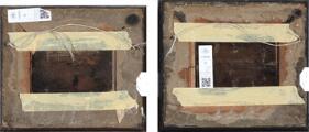 The former: Traces of overcleaning and a few minimal peelings at edge. Slight bulging. Some retouches. In need of cleaning. The latter: Scratches, crackles, a few minimal peelings and three corners cut off. In need of a slight surface cleaning.