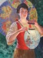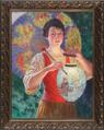 En ung kvinde med en parasol og kinesisk lanterne. Sign. Emil Lundgren 1928. Olie på lærred. 92×68.