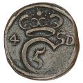 Christian V, Christianstad, 4 skilling u.år, kobber, H 134A, S 54, Aagaard 4S-1, 7,71 g - eksemplar på rund blanket