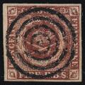 1851. 4 RBS FERSLEW 1B. Plade I, nr. 53 uretoucheret bundmønster. Nydeligt mærke med helt centralt stumt stempel. Ex. Borch Jensen. Attest Møller [ 1 ] [  ]