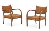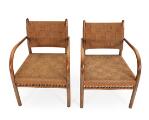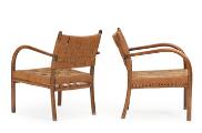 Et par armstole med svungent stel af bøg. Sæde og ryg udspændt med flettet søgræs. Model 1462. Udført 1930erne hos Fritz Hansen. (2)
