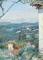 A view from an Italian loggia in the Maritime alps. Signed C. Hubert Letts. Oil on canvas laid on cardboard. Ca. 35.5×25.5 cm.