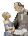“H. C. Andersen” and “Fish market”. Two porcelain figures, decorated in colours. 2037 and 2238. Bing & Grøndahl. H. 21 and 23 cm. (2).