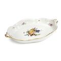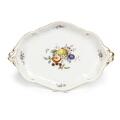 Porcelain dish, decorated in colours and gold with flowers and insects. Meissen. 20th century. L. 29 cm.