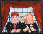 “Party gæster”, 2006. Sign. RS 06 med titel og datering på bagsiden. Olie på lærred. 24×30.