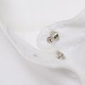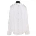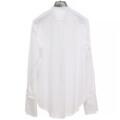 Alexander McQueen: Hvid skjorte med lange ærmer, høj hals og syv sølvfarvede knapper foran. Størrelse 48 (IT). Cirka størrelse 42–44.