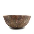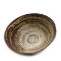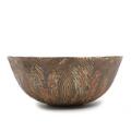 Cirkulær skål af stentøj, udvendigt modelleret i riflet stil, dekoreret med Sung glasur. Signeret Salto, 20675. Kgl. P. Formgivet 1944. H. 12,5. Diam. 30.